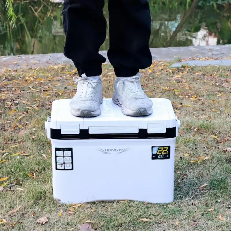 2.Durable Material: Our Fishing Cooler box comprises a solid case that resists external impact and wear, with special processing for extended use. Even after acciteeth bumps or drops, it ensures a long service life and high durability, ensuring your catch stays well-maintained.