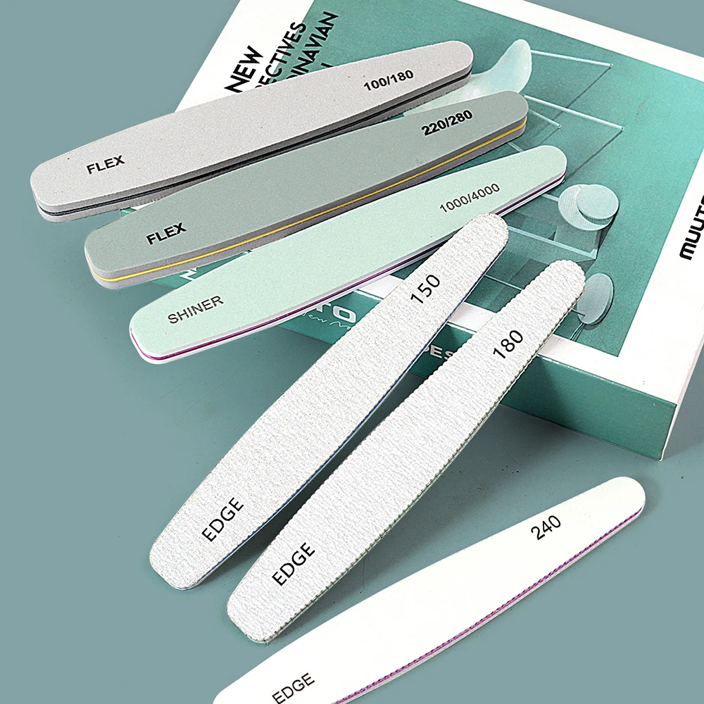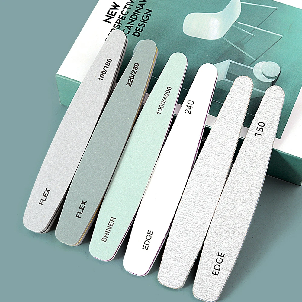 Function Differently: These nail buffers include EDGE Silver 150 Cushioned Board, EDGE Silver 180 Cushioned Board, EDGE White 240 Cushioned Board, FLEX Silver 100/180 Buffer, FLEX Silver/Moss 220/280 Buffer, FLEX Green/White1000/4000 Shine, different girts function differently